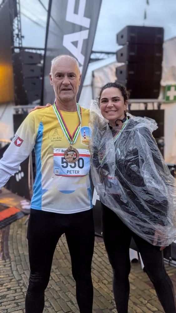 Olaf en Peter P. waren op zaterdag naar het eiland van de Brandaris heen en weer gereisd voor de 10 kilometer, zo bleef er ook nog wat tijd over voor een fietstocht op de middag, al hoewel het in Midsland op een gegeven moment ook wel gezellig zat, werd er niet heel veel meer gefietst. Omdat Olaf netto 3 tellen sneller was dan zijn idool, heeft Olaf maar besloten zijn loopschoenen aan de wilgen te hangen.